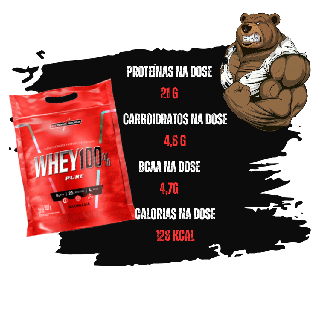 O Whey 100% Pure da Integralmédica é o suplemento ideal para quem busca um complemento de proteínas em sua dieta, sendo um produto altamente concentrado, fornecendo 20g de proteínas, 9,7g de aminoácidos essenciais e 4,3g de BCAA (sendo 2g de Leucina).